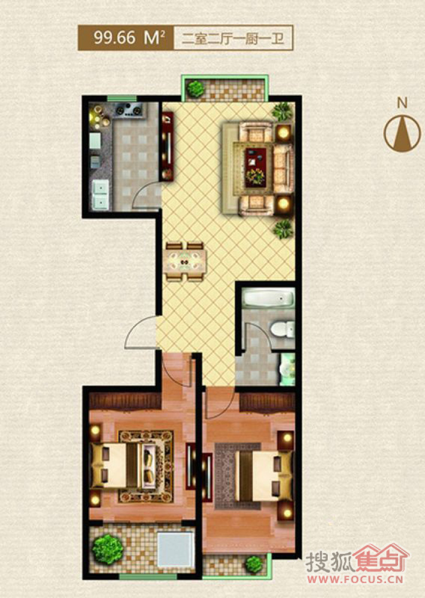 尚东郡14号楼-2室2厅1卫-99.66㎡