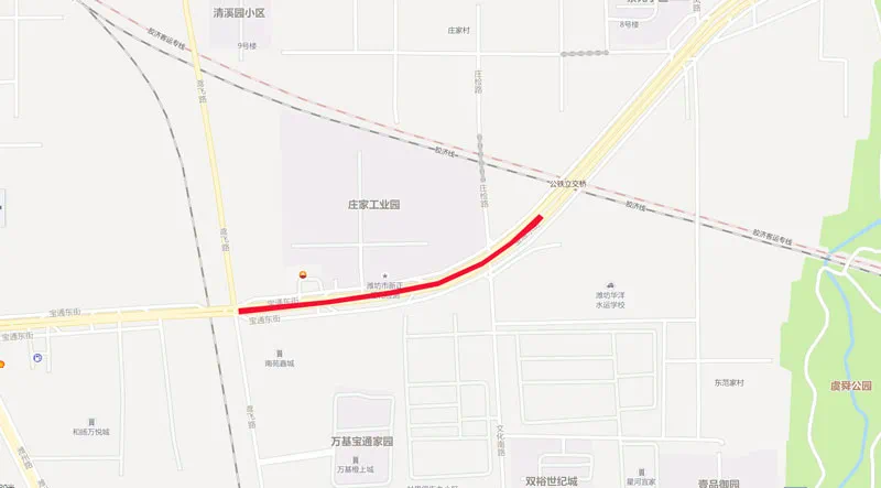 《潍坊市城市综合交通规划》《中心城区内环快速路系统建设方案规划》等专项规划对城区的快速路进行了布局,规划在中心城区搭建起“五横五纵”快速路系统,宝通街是其中一条重要的东西向快速通道。