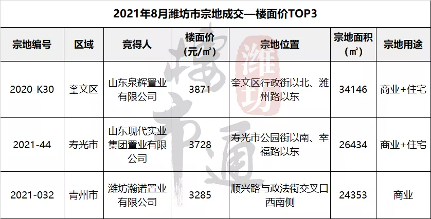 8月9日第二弹。位于奎文区行政街以北、潍州路以东的老市府C地块住宅部分2020-K30摘牌。依然由山东泉辉置业有限公司拿下,成交价800万元/亩。